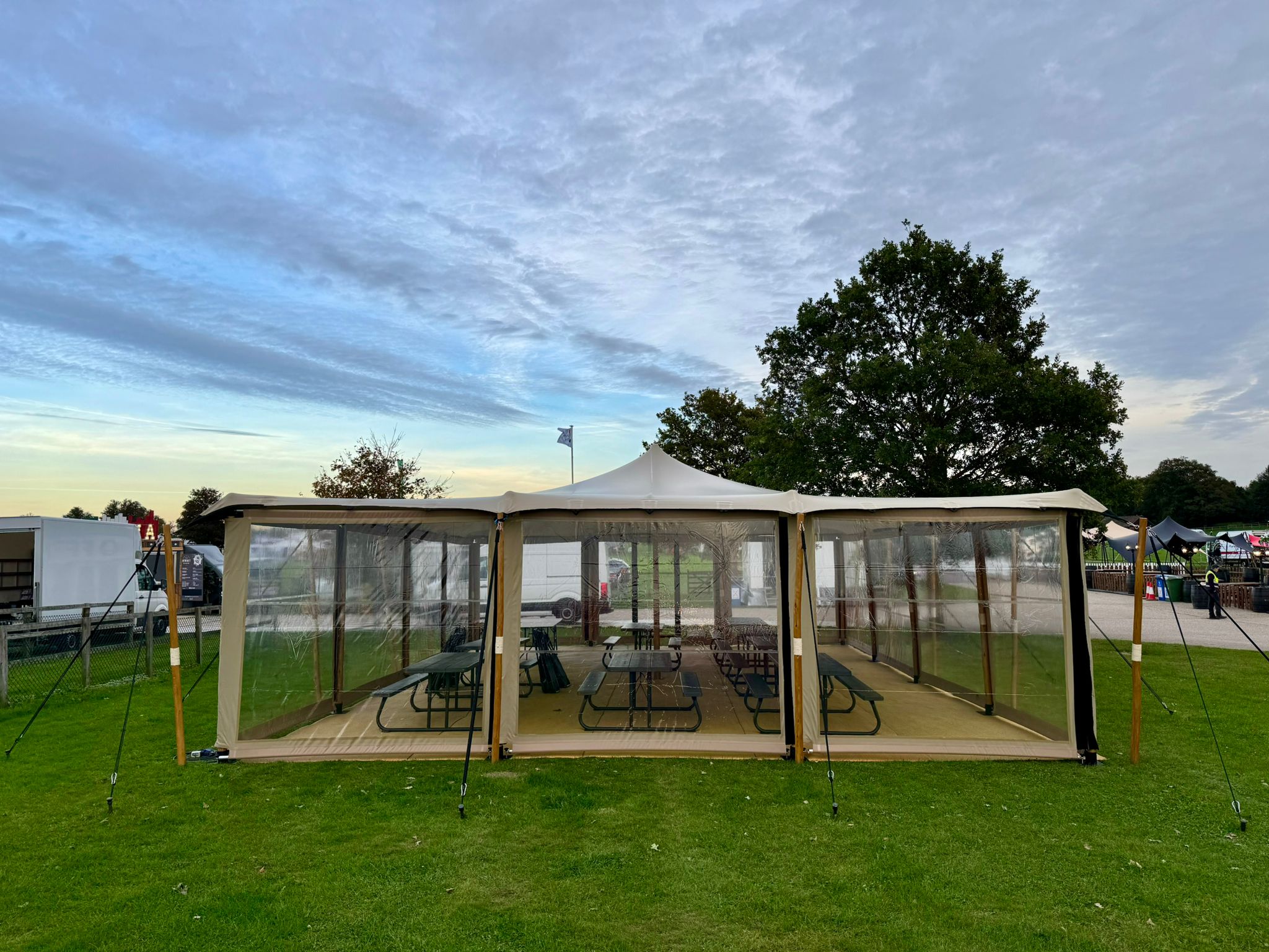 Wij kunnen een klein gedeelte van de sailcloth tent afsluiten of de hele tent. De keuze is aan de klant.
